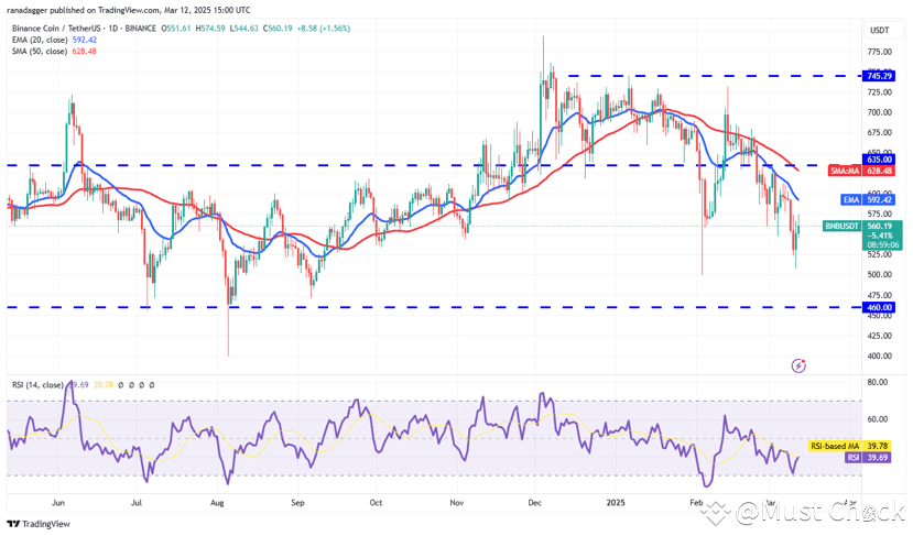 The relief rally is expected to face selling at the 20-day EMA ($592). If the price turns down sharply from the 20-day EMA, the bears will try to sink the BNB/USDT pair below $500. The pair may drop to $460 if they can pull it off.