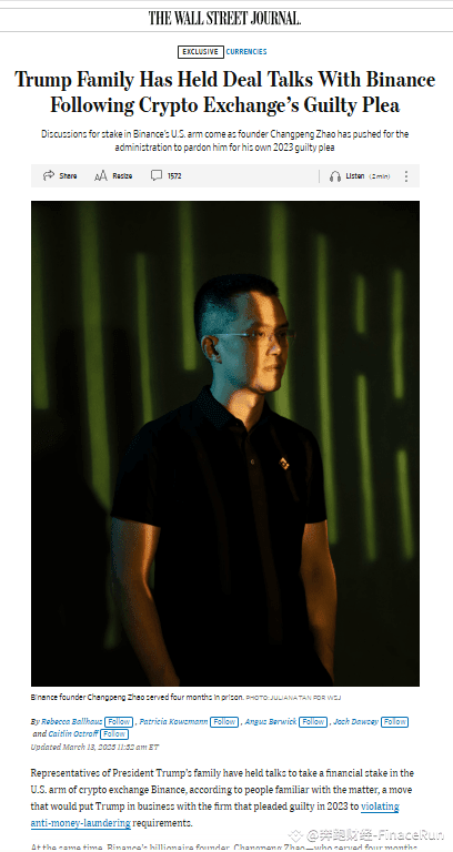 CZ推测,如果有超过20个人找到他,告诉他《华尔街日报》(以及另一家媒体)问了他们一个问题:“你能确认CZ为了获得赦免而达成了某种交易吗?”