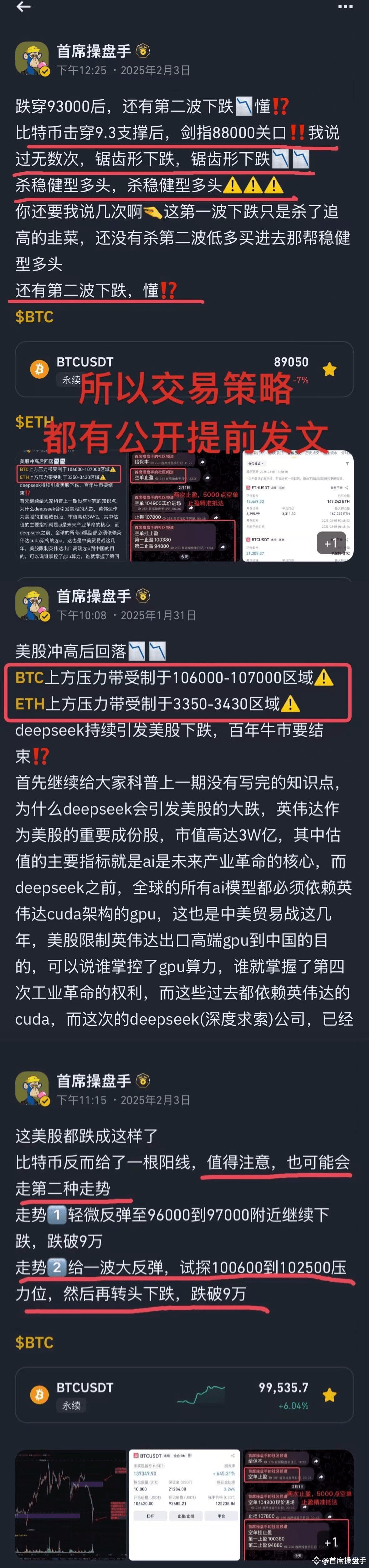 视频3️⃣👉公开发文预判deepseek导致美股崩盘,特朗普开启全球关税贸易战,2月份比特币所有行情公开提前发文预判录屏3