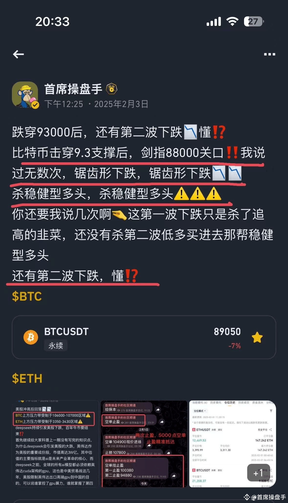 这是公开发文预判从102000开始就要跌破8.8万📉📉