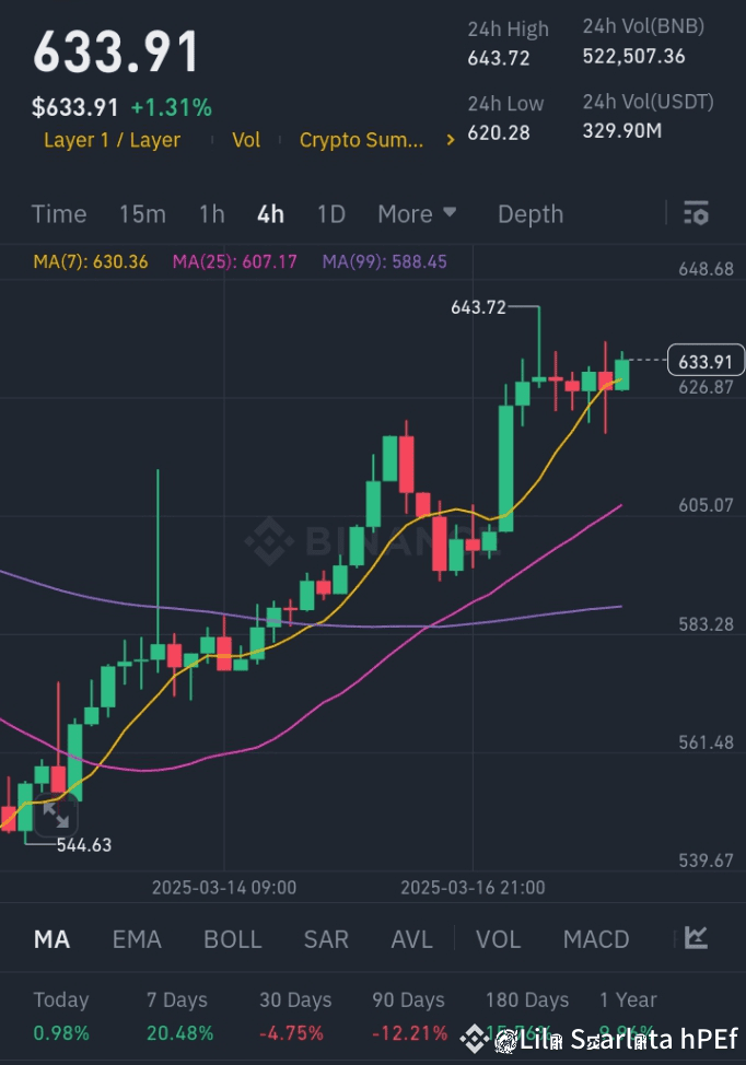 Price Action: BNB recently touched $643.72, proving its strength in the market. Despite slight pullbacks, it’s showing resilience, which is a bullish signal.