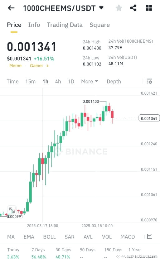 $1000CHEEMS is surging, up +16.51% in the last 24 hours! With rising volume and bullish momentum, this meme coin is gearing up for a strong breakout.