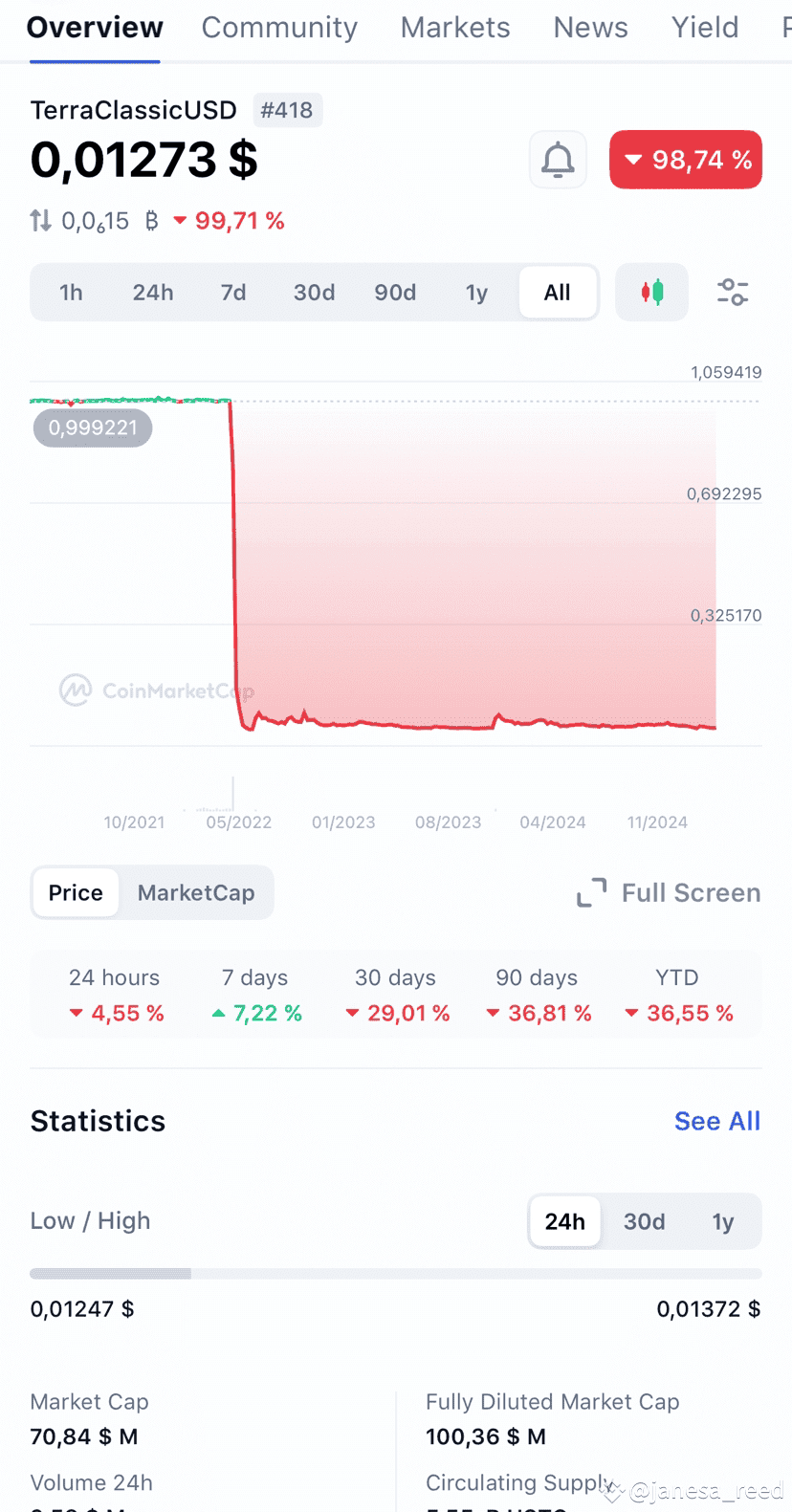 Putting all your funds into a single project—even a top-ranked one like LUNA—is risky. Diversify across multiple assets to reduce your losses in case of failure.