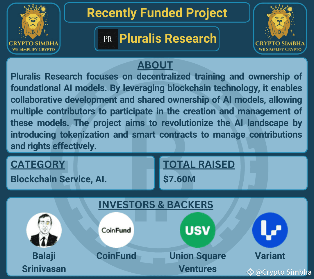 🔹About: Pluralis Research focuses on decentralized training and ownership of foundational AI models. By leveraging blockchain technology, it enables collaborative development and shared ownership of AI models, allowing multiple contributors to participate in the creation and management of these models. The project aims to revolutionize the AI landscape by introducing tokenization and smart contracts to manage contributions and rights effectively.