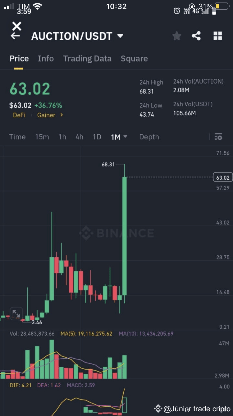 Esta manhã, ele me mandou uma mensagem frustrado—AUCTION atingiu $68! Quando perguntei onde ele comprou, ele disse: "Eu estava esperando que caísse abaixo de $10..."📉 O Problema? Esperar pela "entrada perfeita" muitas vezes significa perder todo o movimento!