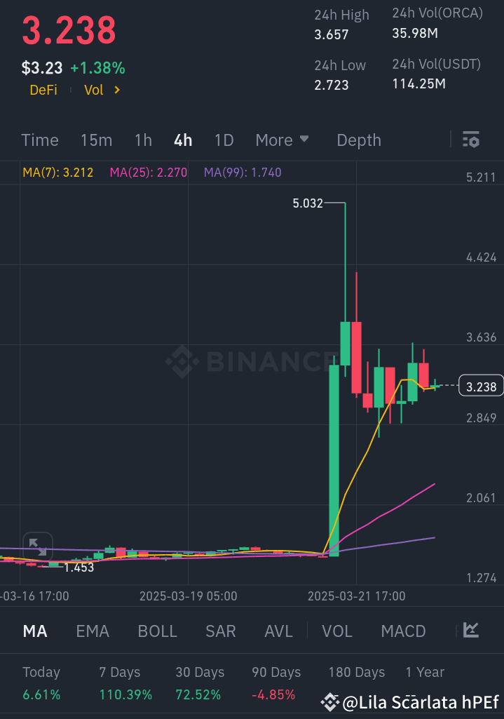 Right now, ORCA is stabilizing around $3.23, after touching a high of $5.03. This is the golden entry zone before the next leg up. Once the price crosses $3.65 again, it could easily shoot to $7+ in the short term.
