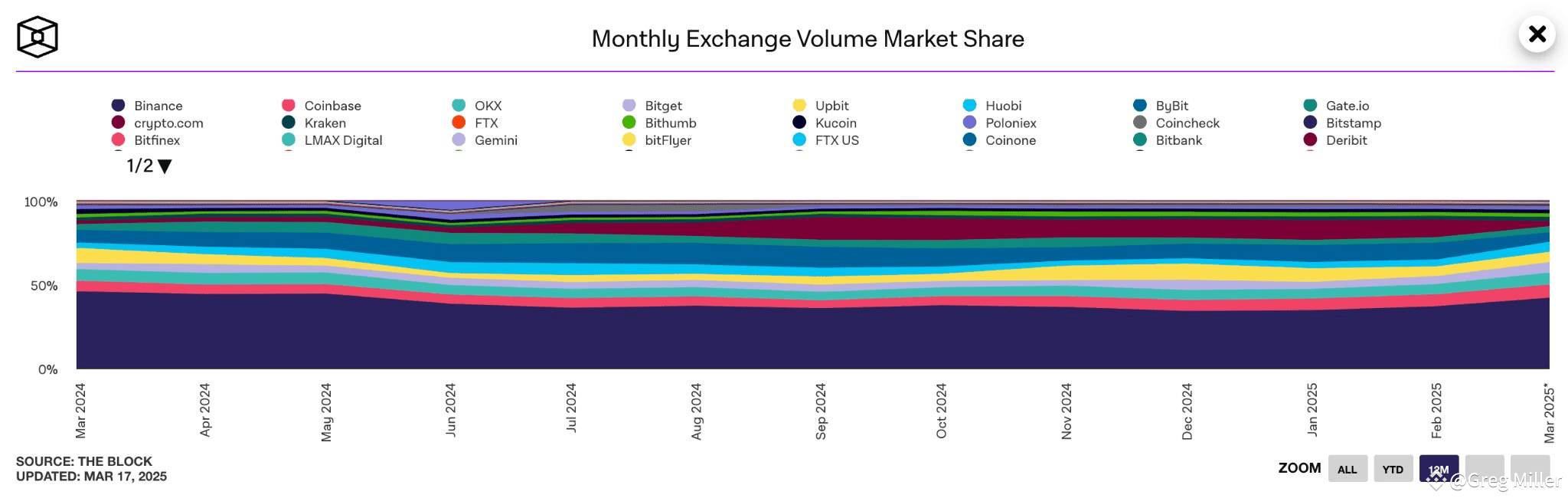 According to The Block Binance’s market share has soared to 41.87%,its highest level in 10 months more than 5x the next biggest exchange Coinbase, 7.88% and nearly 6x OKX (7.18%)