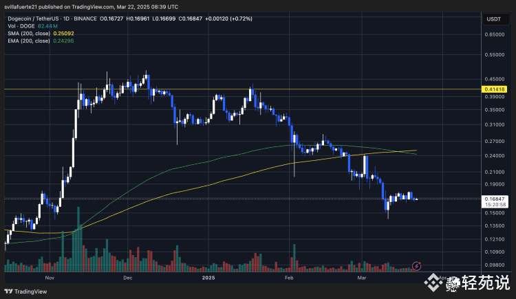 自 3 月 11 日以来,狗狗币(DOGE)一直处于 0.16 美元至 0.18 美元之间的窄幅震荡区间,缺乏明显的方向性突破。这种长时间的横盘整理令投资者感到不安,尤其是在全球宏观经济不确定性加剧、货币政策趋紧以及贸易紧张局势持续的背景下,加密货币市场整体陷入低迷,投资者正密切关注可能决定市场下一步走向的关键催化剂。