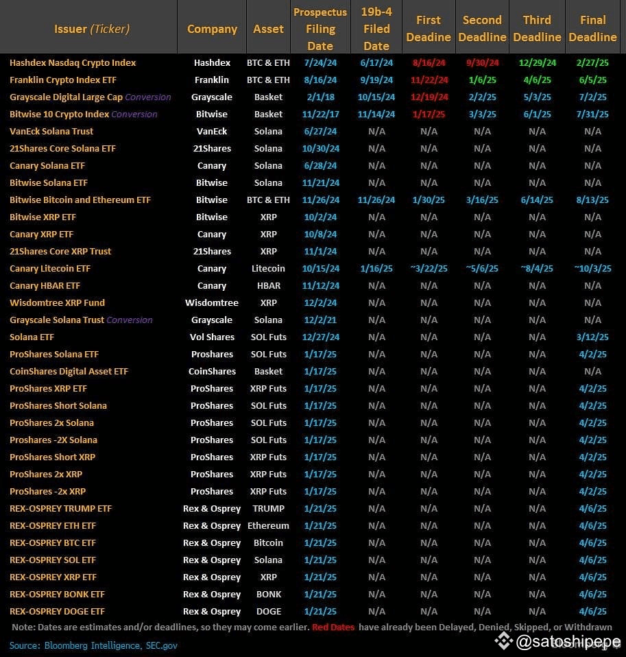 Các ETF crypto đang chờ SEC duyệt. Nguồn: Bloomberg (31/01/2025)