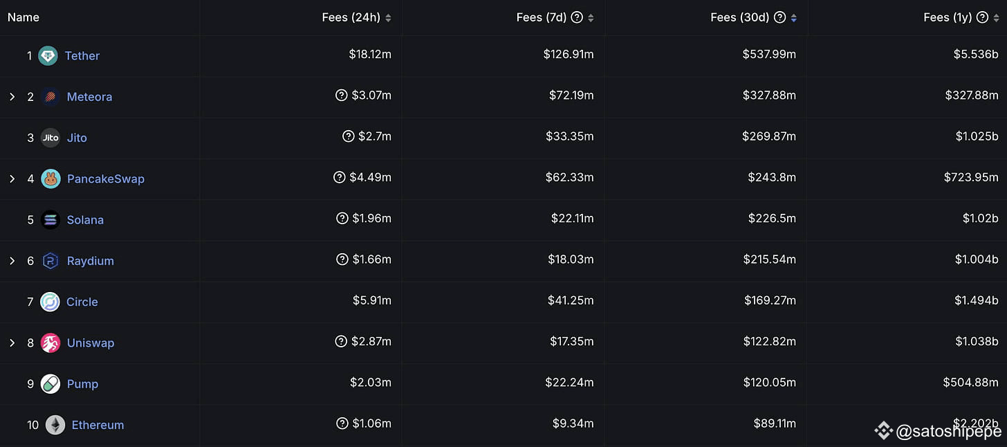 Sẽ thật thiếu sót nếu không đưa Meteora vào danh sách các dự án đáng chú ý năm 2025. Cùng với sự bùng nổ của hệ sinh thái Solana, Meteora luôn là dự án nằm trong top các giao thức tạo ra nhiều doanh thu nhất.