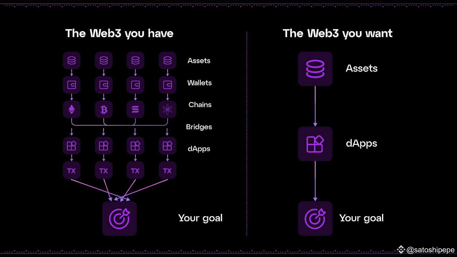 Trong tất cả các giải pháp đang diễn ra thì Chain Abstraction có thể coi là “end game” đối với vấn đề này. Chain Abstraction là khái niệm ám chỉ việc đơn giản hóa tương tác của người dùng với nhiều blockchain khác nhau, mang lại trải nghiệm “không blockchain”. Thay vì phải thực hiện các thao tác phức tạp như chuyển đổi tài sản giữa các chuỗi, quản lý nhiều loại token gas hoặc chuyển đổi mạng lưới, Chain Abstraction giúp người dùng tương tác với các ứng dụng phi tập trung thông qua một giao diện duy nhất mà không cần kiến thức kỹ thuật sâu rộng. Điều này làm cho trải nghiệm Web3 trở nên dễ tiếp cận và thuận tiện hơn.