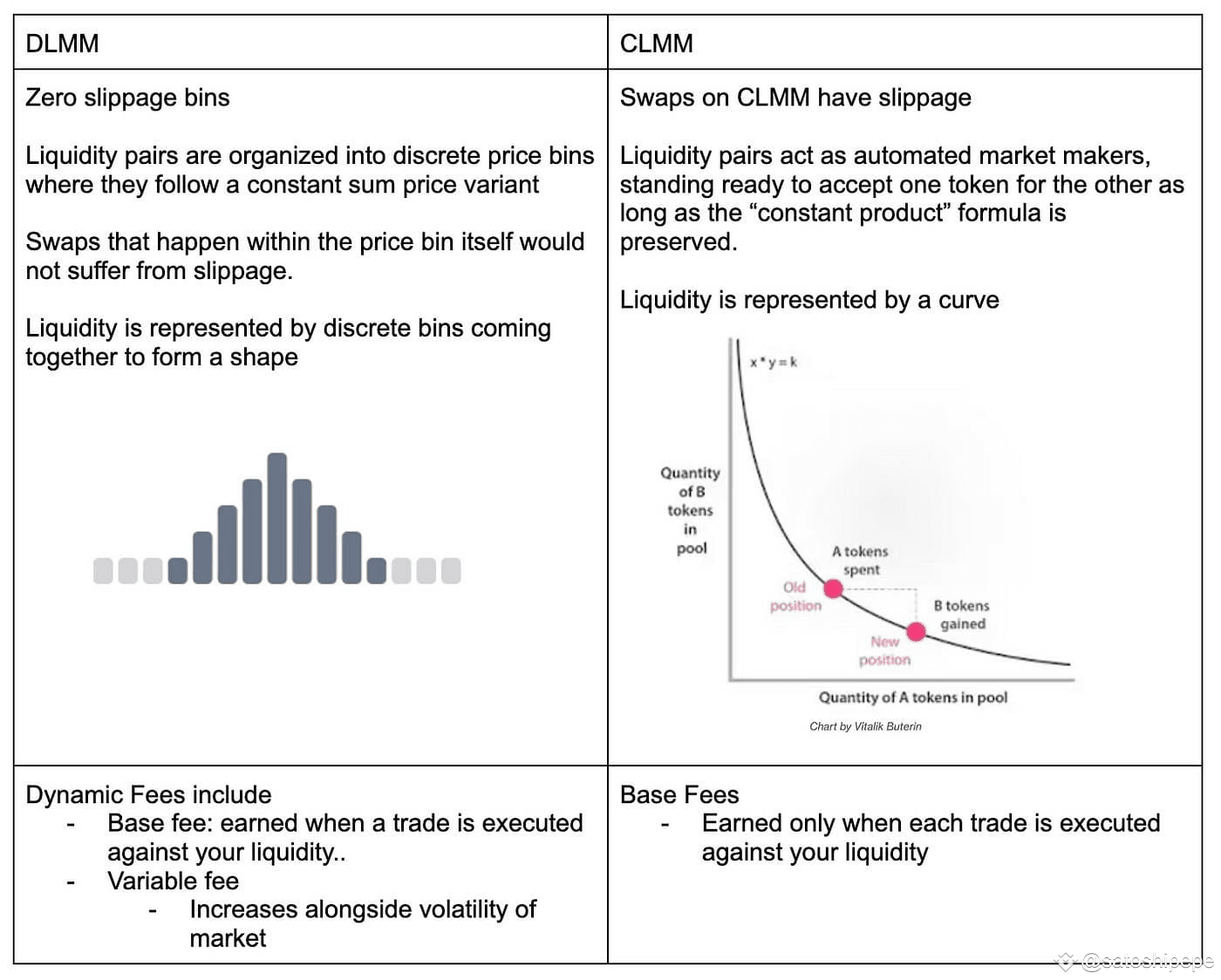 So sánh giữa DLMM và CLMM. Nguồn: Meteora