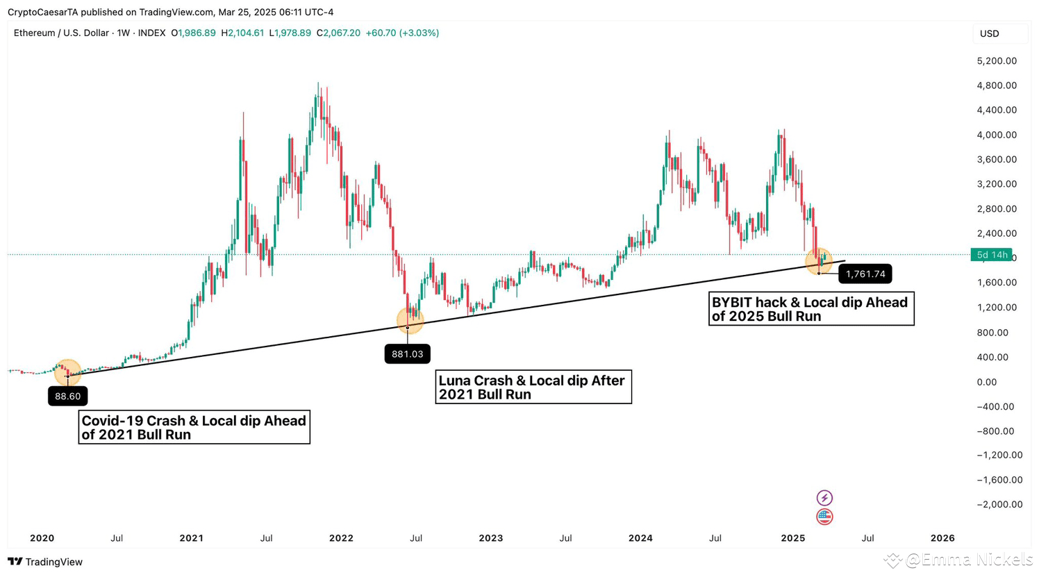 Crypto analyst Crypto Caesar sees signs of a bottoming out for Ethereum. According to him, ETH’s current price is way underpriced. He points to past bull markets where Ethereum bounced back after sharp corrections. And this time? He believes Ethereum could be setting up for its next big comeback. 🔄