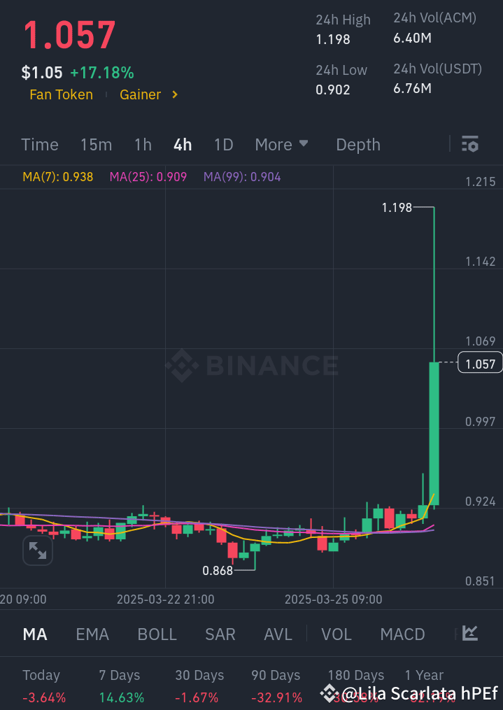 The latest chart of ACM Coin speaks volumes. Just a few hours ago, it touched $1.198, marking a massive breakout from $0.868—a 38% jump in no time! This isn't just a random spike; it's a signal. The market sentiment has shifted, and smart money is moving in.