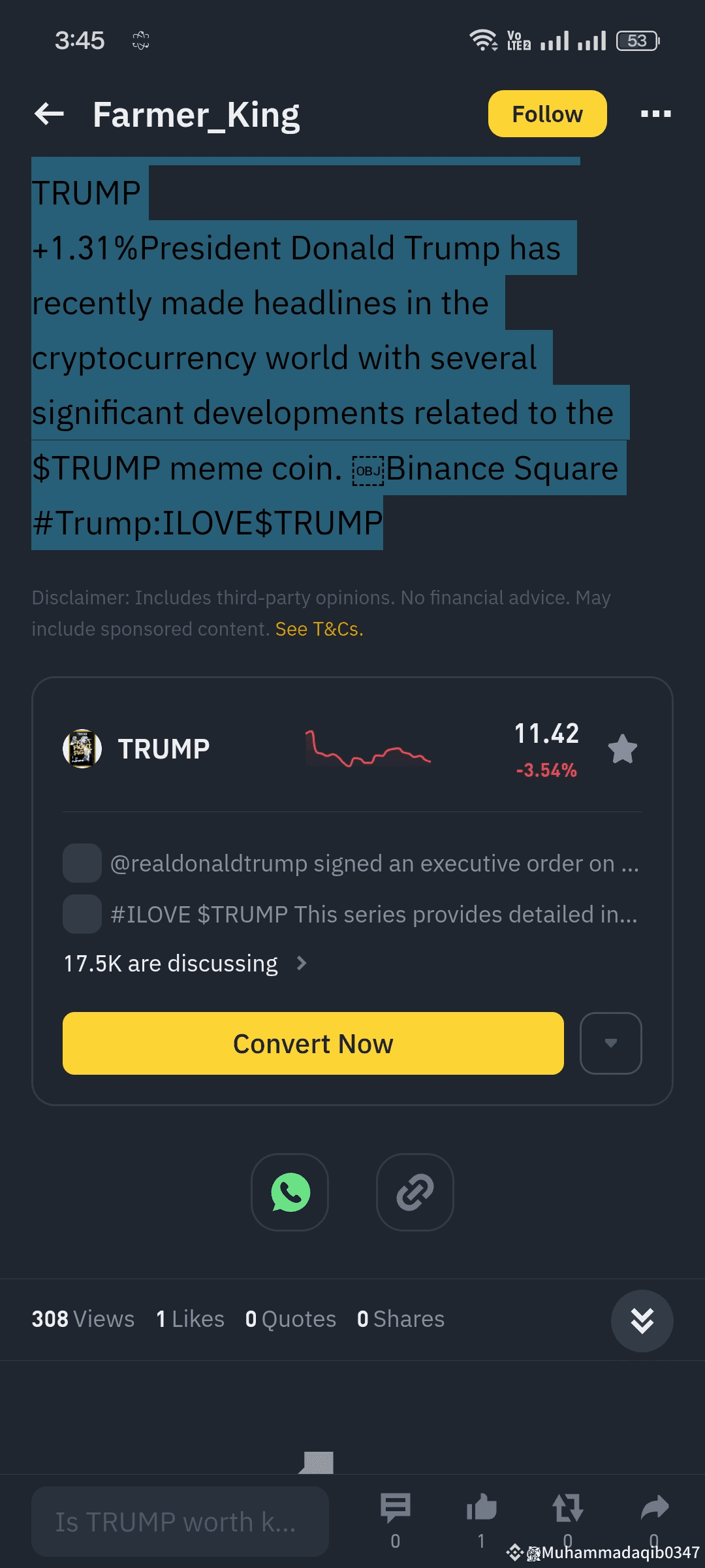Positive: Continued Trump promotion and pro-crypto policies could sustain $TRUMP's relevance.