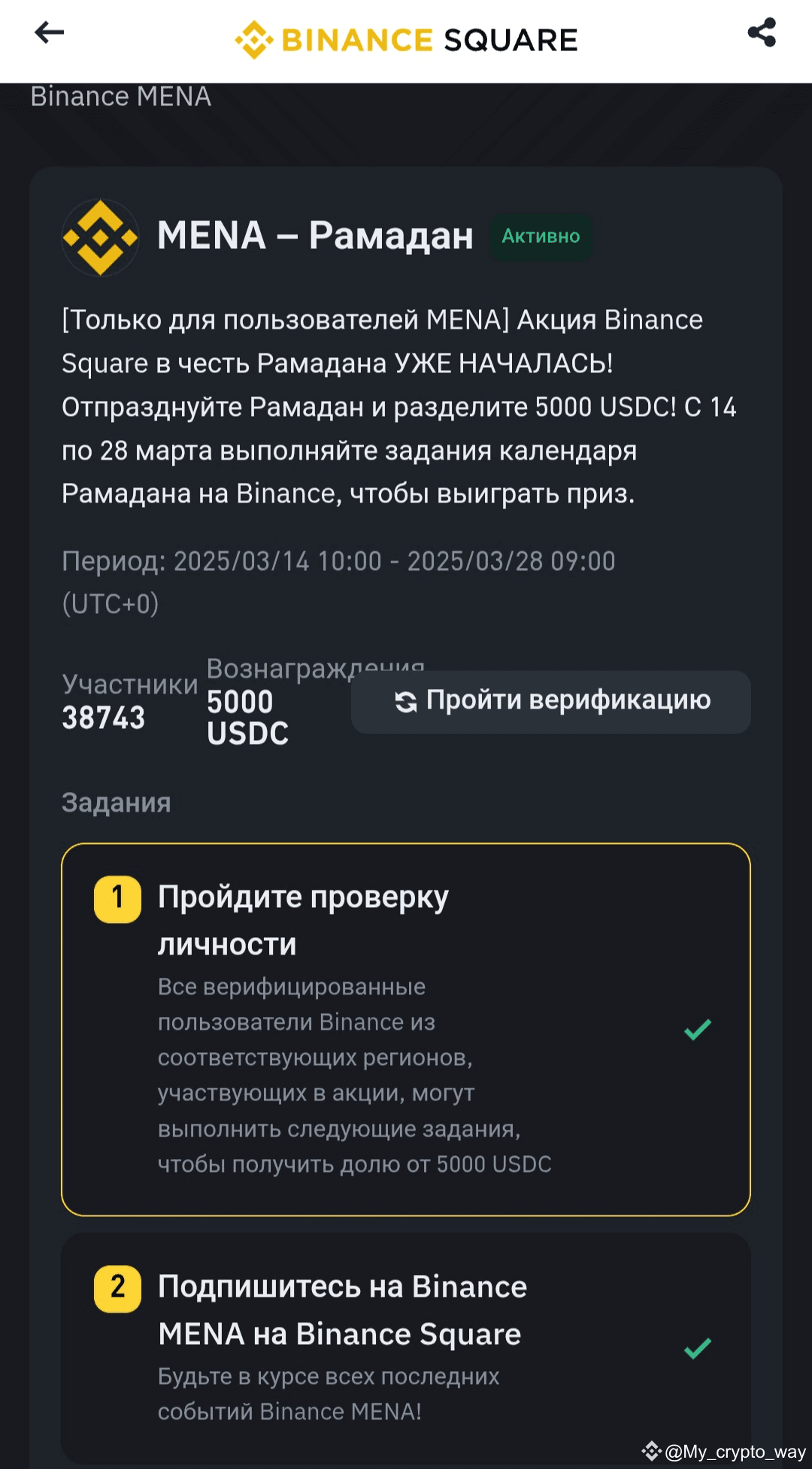 The Binance Square Ramadan Giveaway is LIVE! Celebrate the spirit of Ramadan and claim your share of 5,000 USDC! From March 14-28, complete tasks, and engage with Binance’s 2025 Ramadan Calendar for a chance to win.