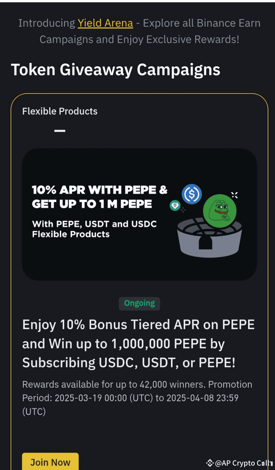 Start with campaigns like $PEPE to see how effortless it is to participate. The new Binance Earn Yield Arena is packed with opportunities for everyone to grow their crypto with ease.