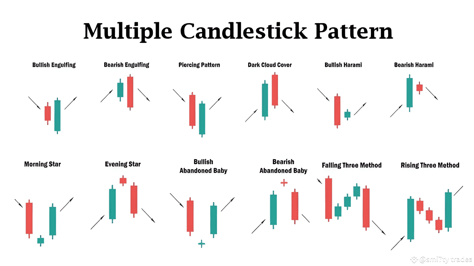 A small green candle followed by a big red candle that engulfs the previous one. 🔄 Signals a bearish reversal after an uptrend.