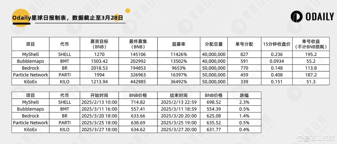 另一个Launchpool板块,情况也不容乐观,之前瓜哥就曾预测过过上一期Launchpool NIL的收益,收益那是相当的低,套保BNB挖矿的用户更是惨遭亏损,相对于之前期次的Launchpool,后面出的这些期收益都大打折扣,所以本期预期也不会很高,合理的上线价格是0.13。