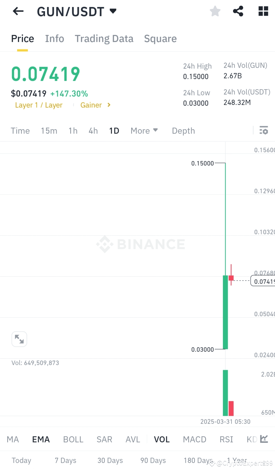 Graph Analysis (GUN/USDT, 1-Day Time Frame):