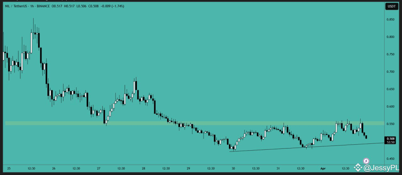 The token was recently listed on the Binance exchange and is currently experiencing heavy selling pressure. The price is attempting to break the resistance level but has been rejected so far. There is a small support line in place, and we will see if the price can hold at this level. This is currently not a trading zone; we are waiting for a candle to close above the $0.55 mark for potential new entries.