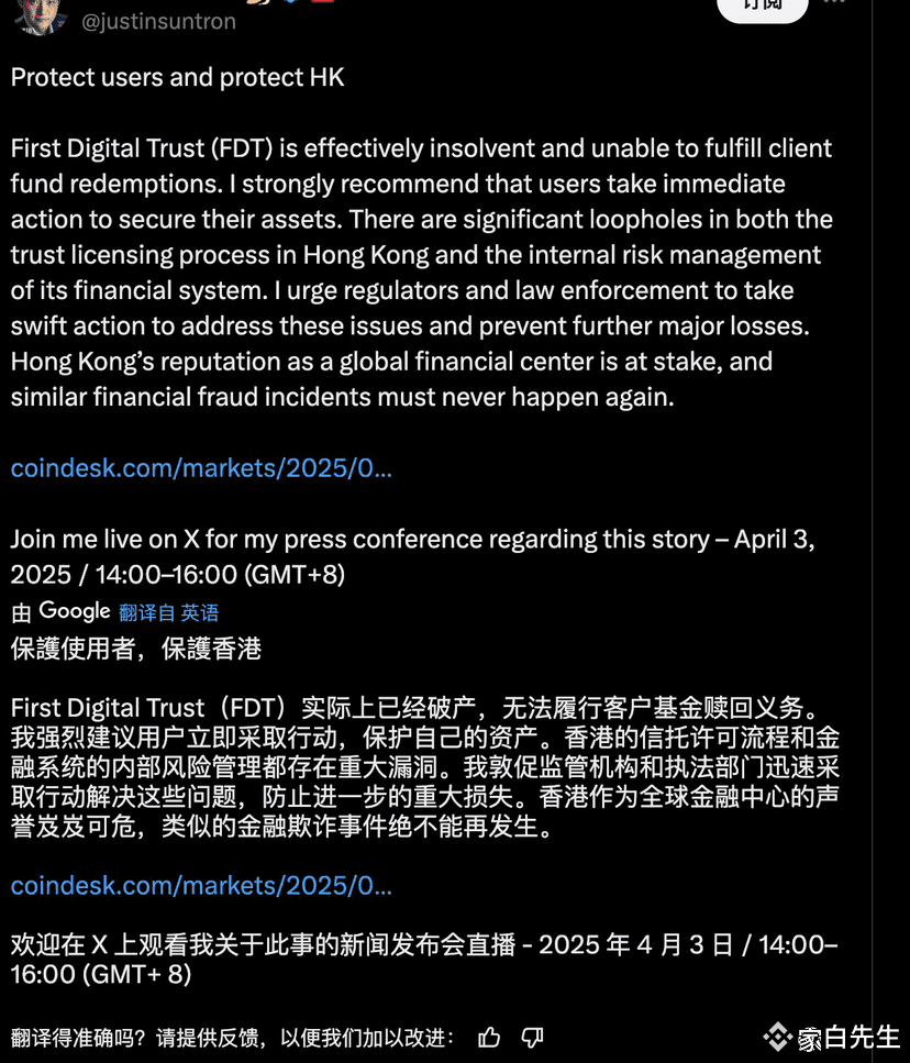 ✅ FDUSD 脱锚风险提示 ,4月2日今天事件已发生,孙哥这次提示,有点像FTX暴雷的时候,@CZ 发表的内容,我说怎么这么似成相识!