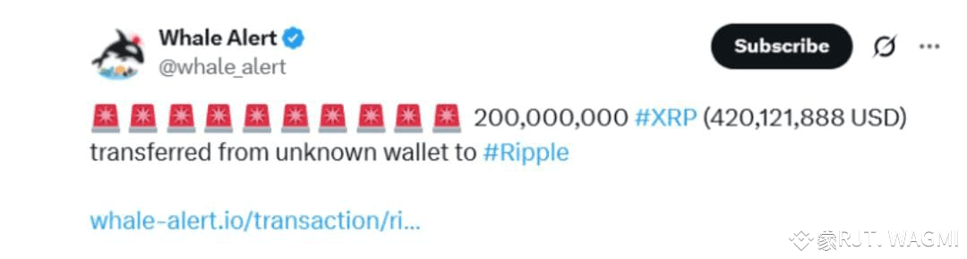 Second Move: 200 million XRP worth $420 million sent to another Ripple-affiliated wallet.