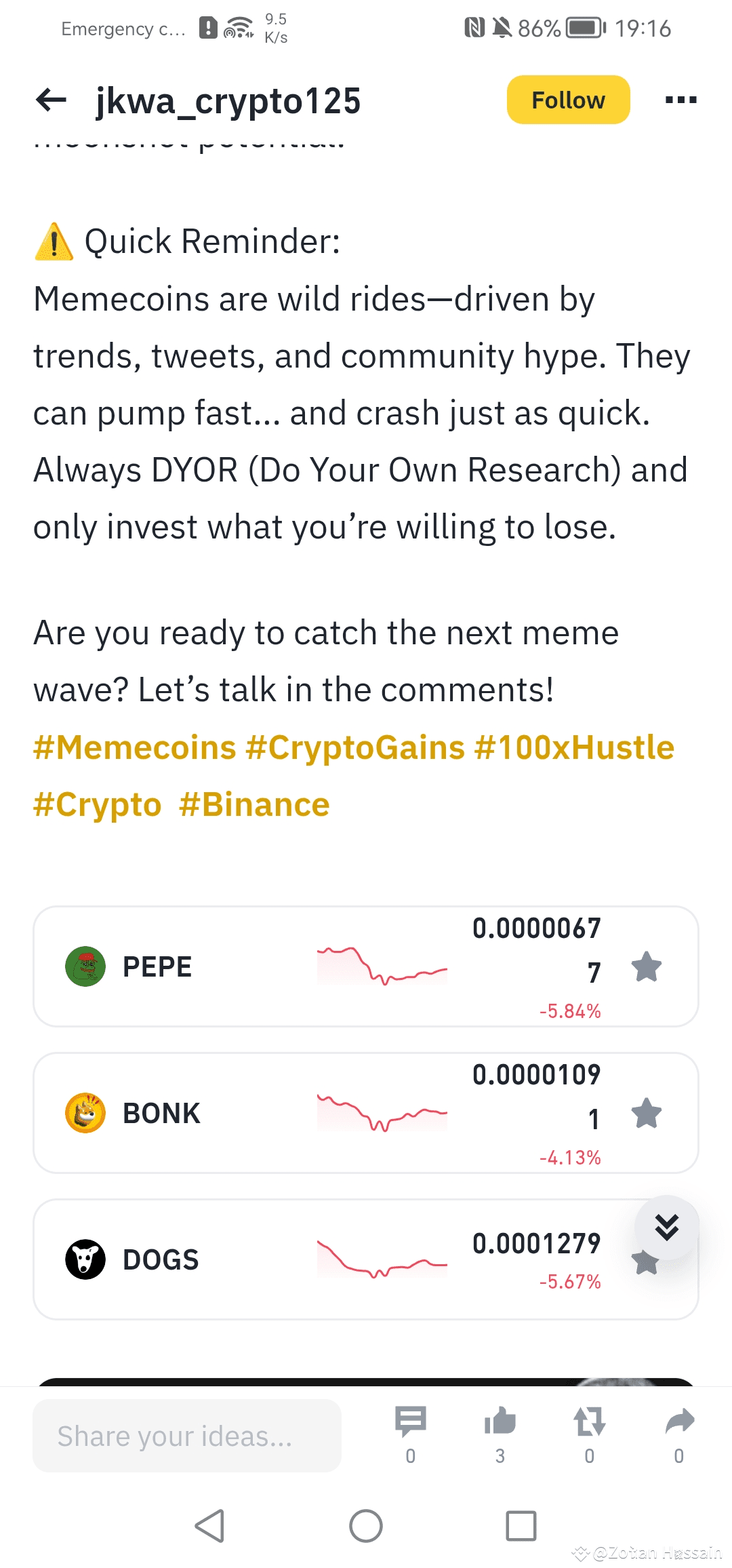 #Memecoins #CryptoGains #100xHustle #Crypto #Binance