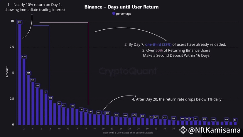 Adding to this, one - third of the returning customers refill their accounts by day seven. This pattern really drives home the idea that Binance is a magnet for repeat traders. It's like a bustling marketplace where traders come and go, constantly looking for the next big opportunity.