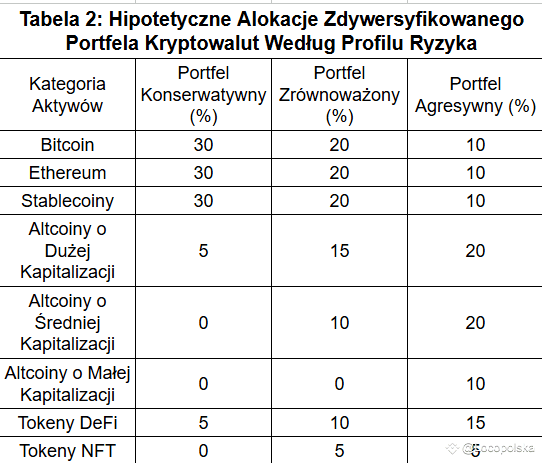 Aby lepiej zrozumieć, jak w praktyce wygląda zdywersyfikowany portfel kryptowalut, przyjrzyjmy się hipotetycznym przykładom dostosowanym do różnych poziomów tolerancji ryzyka.