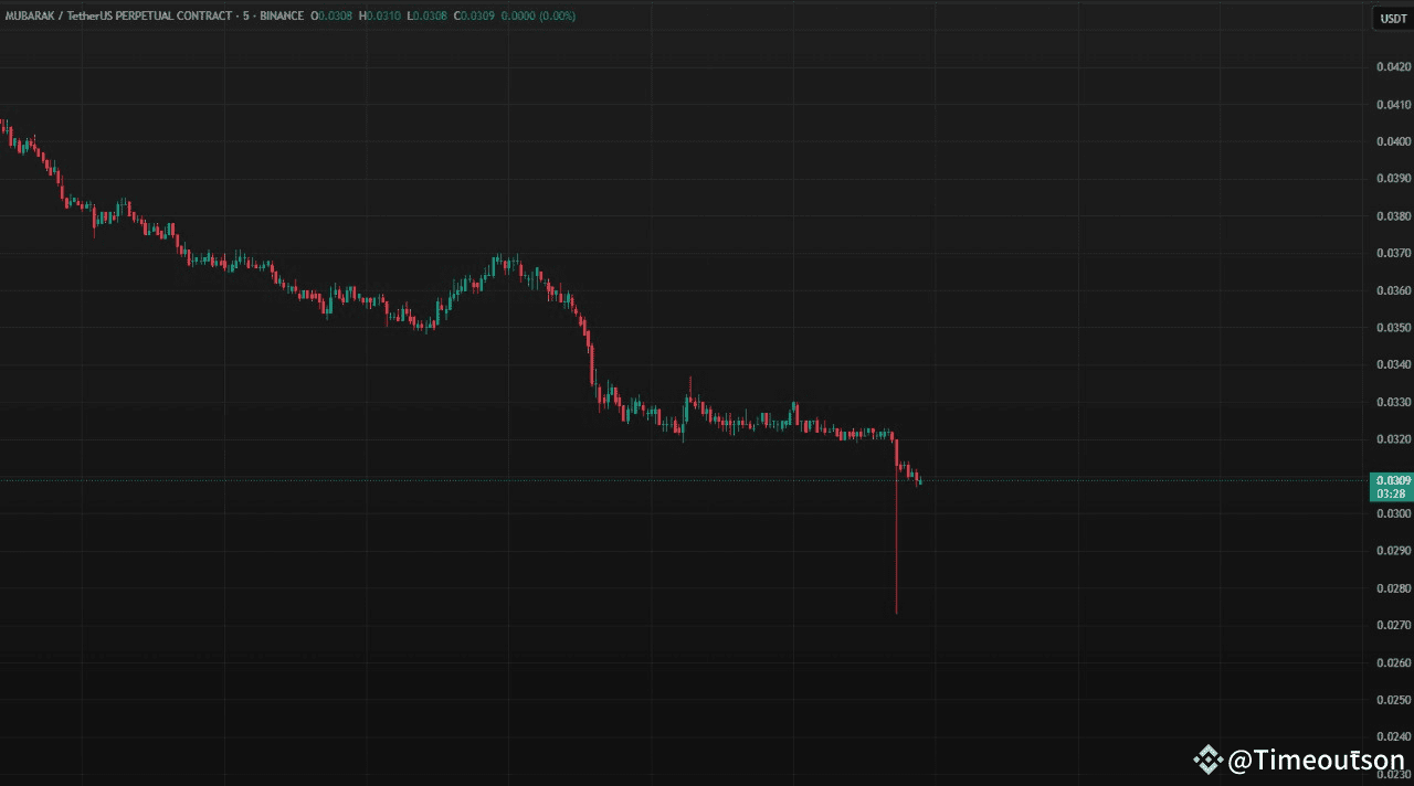 This chart shows a sharp and aggressive market dump on $MUBARAK/USDT. Traders who were overleveraged with long positions likely got liquidated in seconds. You might’ve thought the market wouldn’t drop from this level… but the market does whatever it wants — and usually when you least expect it.