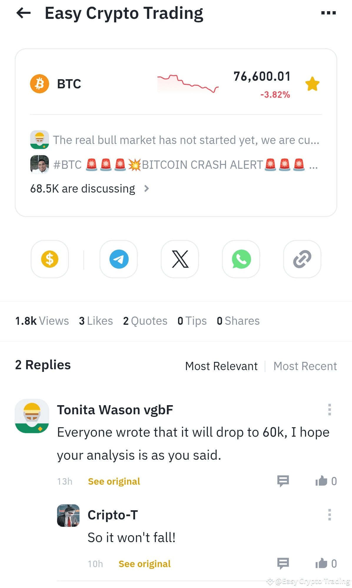 Will BTC ever drop to 60k? Well anything can happen in the crypto space. It's a highly volatile market and that is a constant fact.