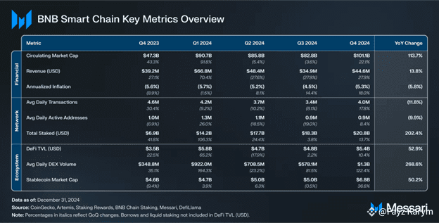 According to **Messari’s Q4 2024 BNB Chain Report**, the ecosystem had a stellar year: