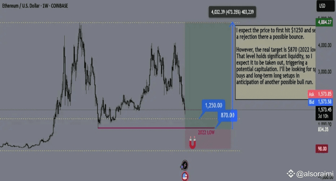 الهدف الحقيقي يقع عند مستوى أقل بكثير - حوالي 870 دولارًا، وهو أدنى مستوى لعملة الإيثريوم في عام 2022.