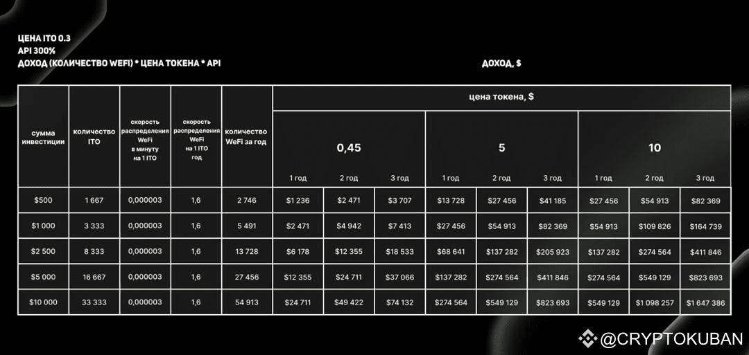 И знаете что самое интересное? У нас есть предварительный математический расчет, который демонстрирует потрясающий потенциал дохода от покупки и активации ITO для майнинга WFI (смотрите прикрепленное изображение)!