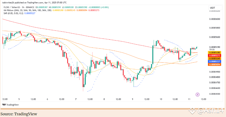 However, the rally would fully ignite once FLOKI breaches the black resistance line on the chart. Once it breaches the level, it could hit the target. Technical indicators pointed to a possible upside too. Two key tools—Moving Average (MA) Ribbon and Parabolic SAR—seemed to support this view.