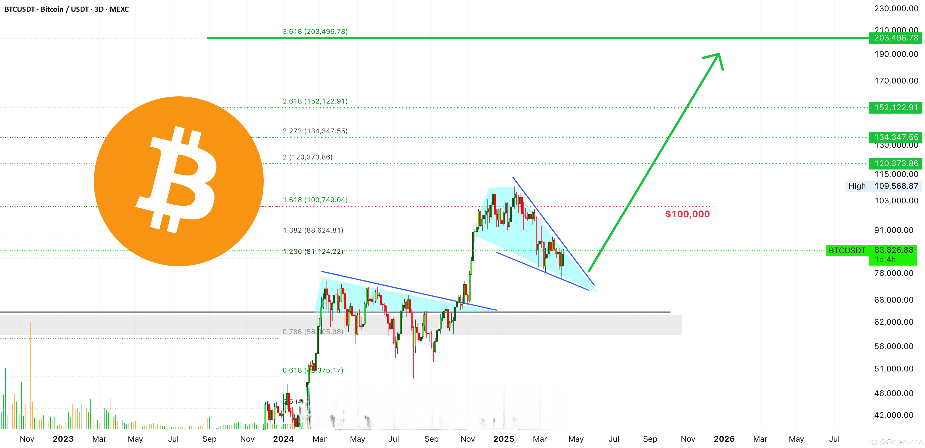 Bitcoin is presenting us with a very clear and strong bullish bias. The action is happening within a very tight falling wedge pattern. All market conditions are bullish, technical and fundamentals. Everything is pointing up starting several days ago. 7-April Bitcoin produced its 2025 market bottom low. From this date on, we will see growth until late 2025 or maybe until early 2026 or beyond.