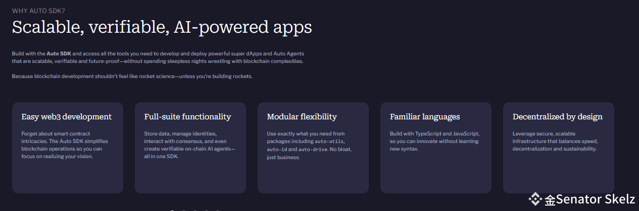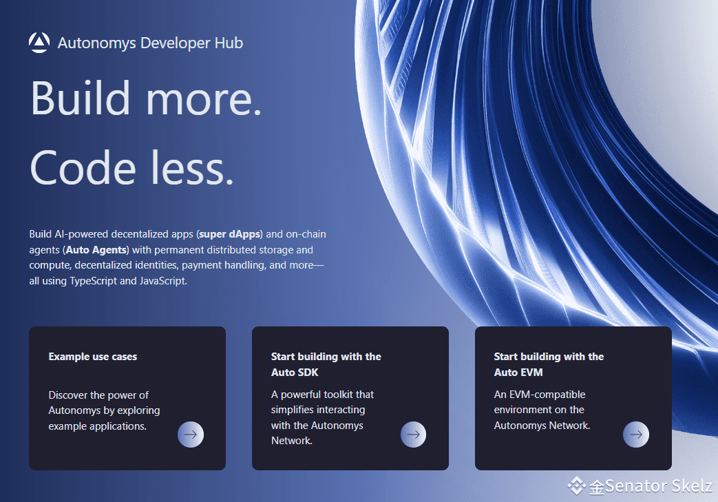 The #Autonomys #developer Hub presents a paradigm-shifting approach to blockchain development with its compelling "Build more. Code less." philosophy. This innovative platform empowers developers to create sophisticated #AI -powered decentralized applications (super #dApps ) and on-chain agents (Auto Agents) using familiar programming languages like TypeScript and JavaScript, significantly lowering the barrier to entry for #blockchain development.