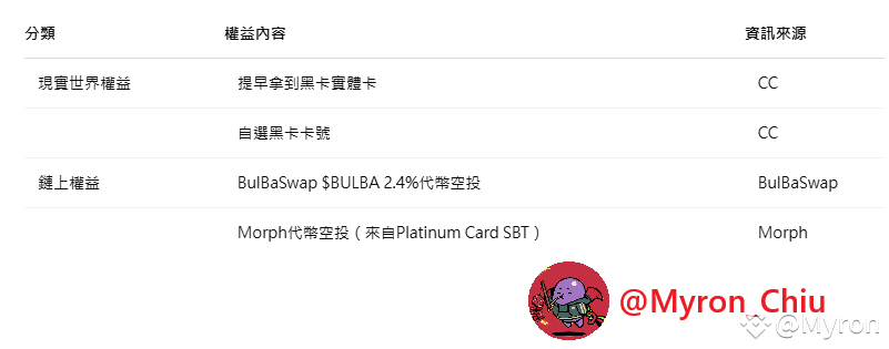 如果你還在猶豫,筆者幫你整理目前的黑卡質押者能獲得的額外權益,如下圖: