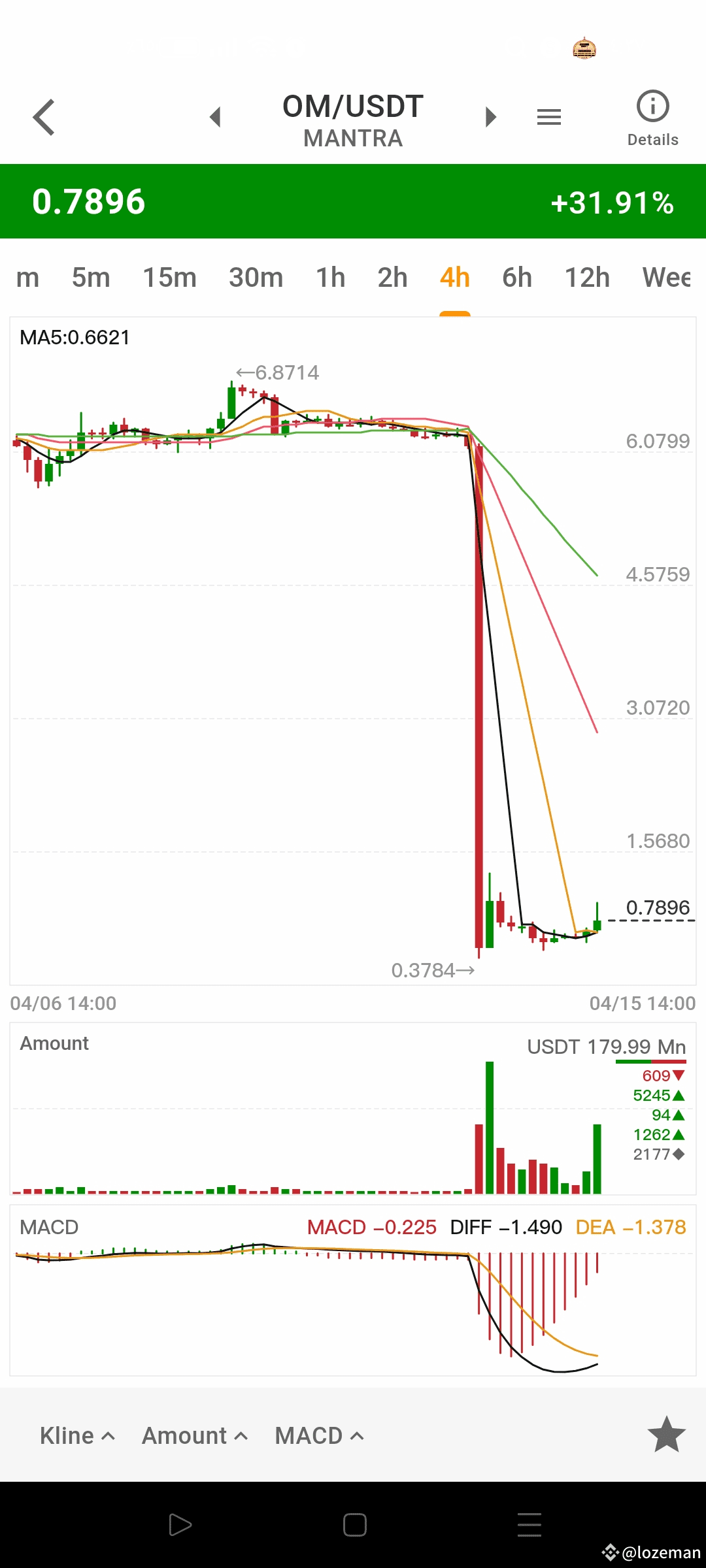 بناءً على الرسم البياني لعملة **OM/USDT** على الإطار الزمني **4 ساعات**، إليك التحليل الفني المفصل: