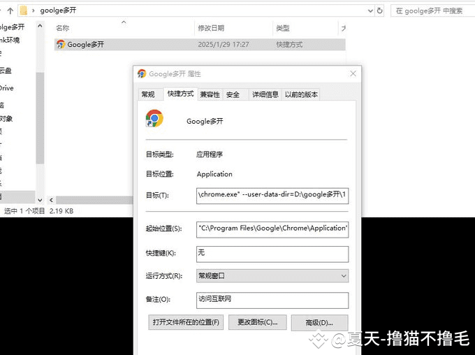 这就是复制完的路径,新增部分就是表示多开了一个谷歌浏览器,你们可以完整的复制出去然后自己改目标路径