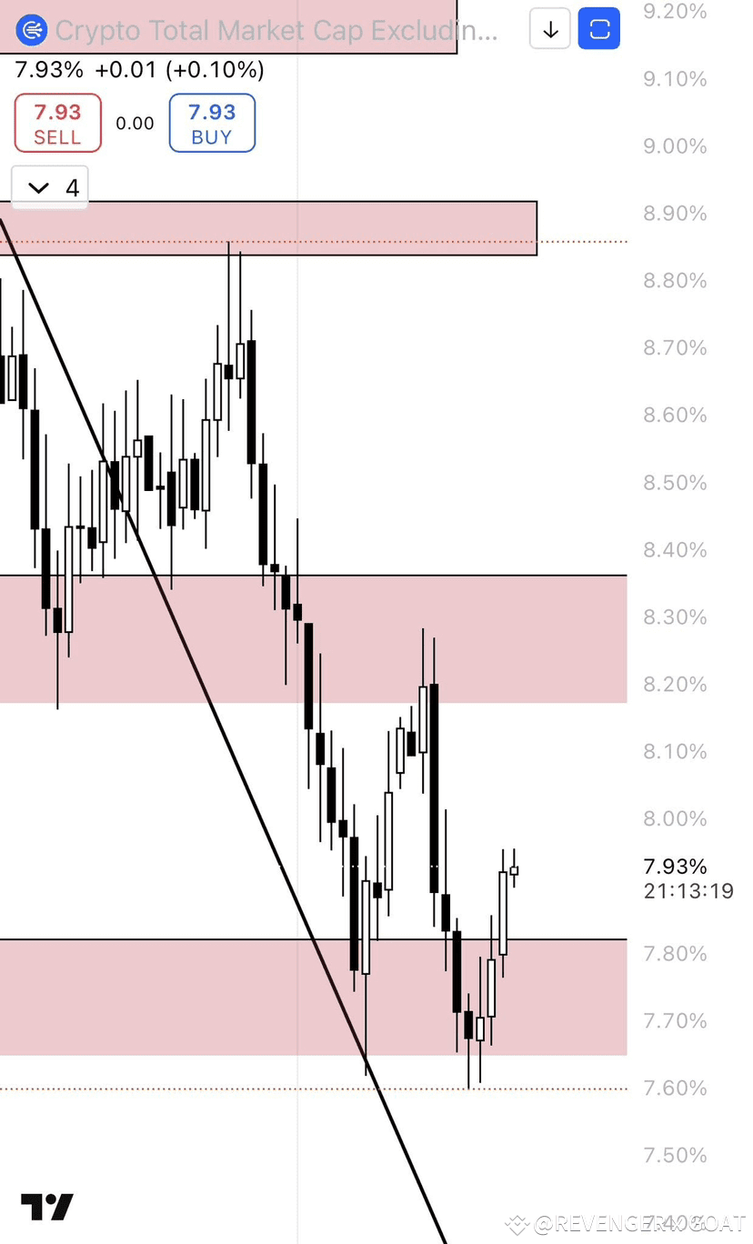 But remember for us to be bullish on Alts we must break the 8.26% resistance and create an HL and then HH backed by volume until then don’t touch Alts unless you’re happy taking the risk before confirmation.