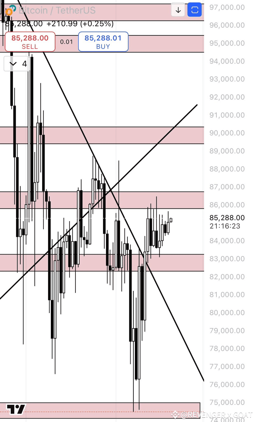 Closed as a bear hammer, we have closed above the downtrend line for 9 days in a row and must break the 86.4k resistance.