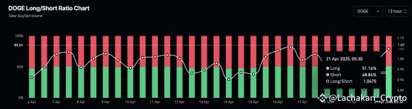 Long positions have climbed from 46.16% to 51.16%, pushing the long-to-short ratio up to 1.0475. While this ratio still suggests a neutral outlook overall, the sudden increase in long positions signals growing optimism for a recovery.