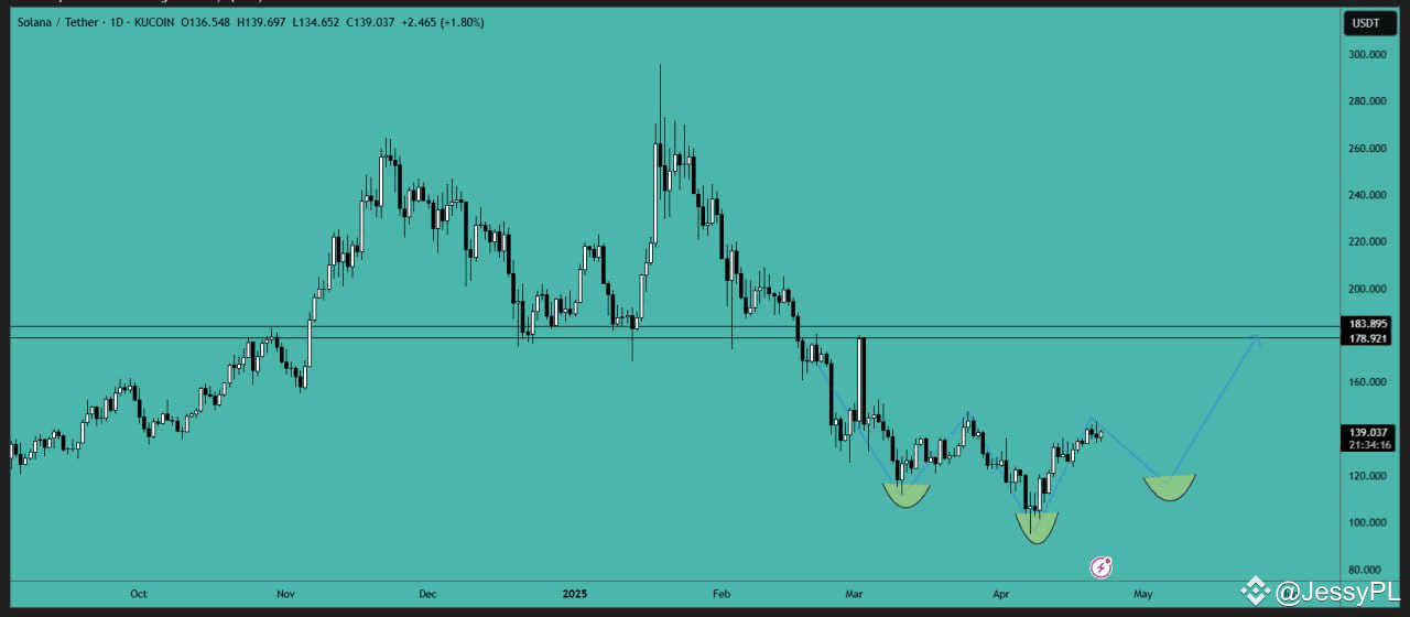 The price is forming an Inverse Head & Shoulders (IH&S) pattern on the daily time frame. There is a high likelihood that we will see a move towards the support area for further accumulation. Currently, the price is at the resistance area. Consider adding some SOL near the support level.