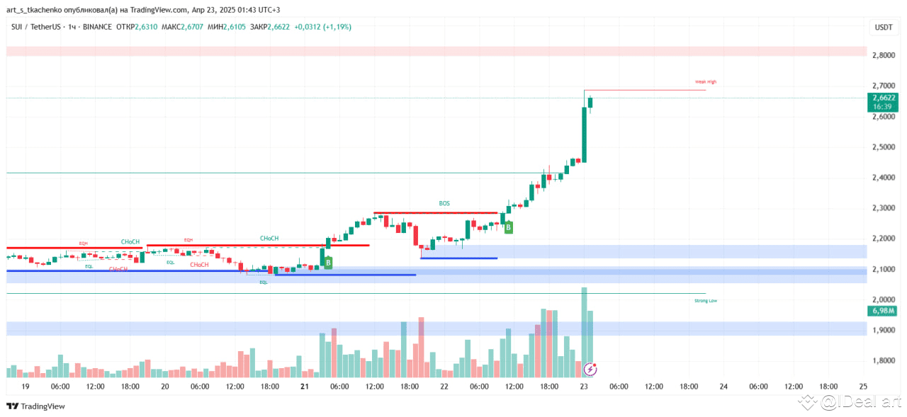 - $2.65–2.68: Умеренные объемы (187K–277K SUI) – слабое сопротивление.