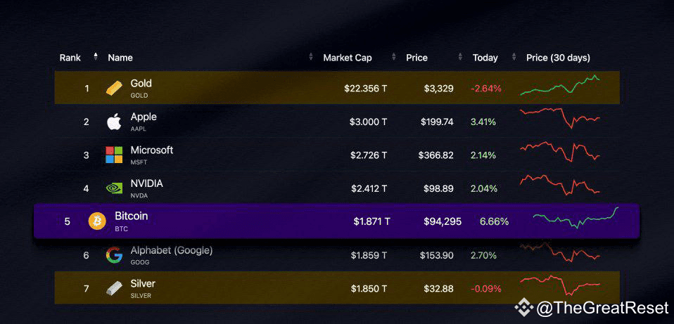 Bitcoin (BTC), the world’s largest cryptocurrency, surged by 6.7% to around US$94,300 on Wednesday (April 23). This rally propelled Bitcoin to become the fifth most valuable asset in the world, overtaking Alphabet—the parent company of Google.