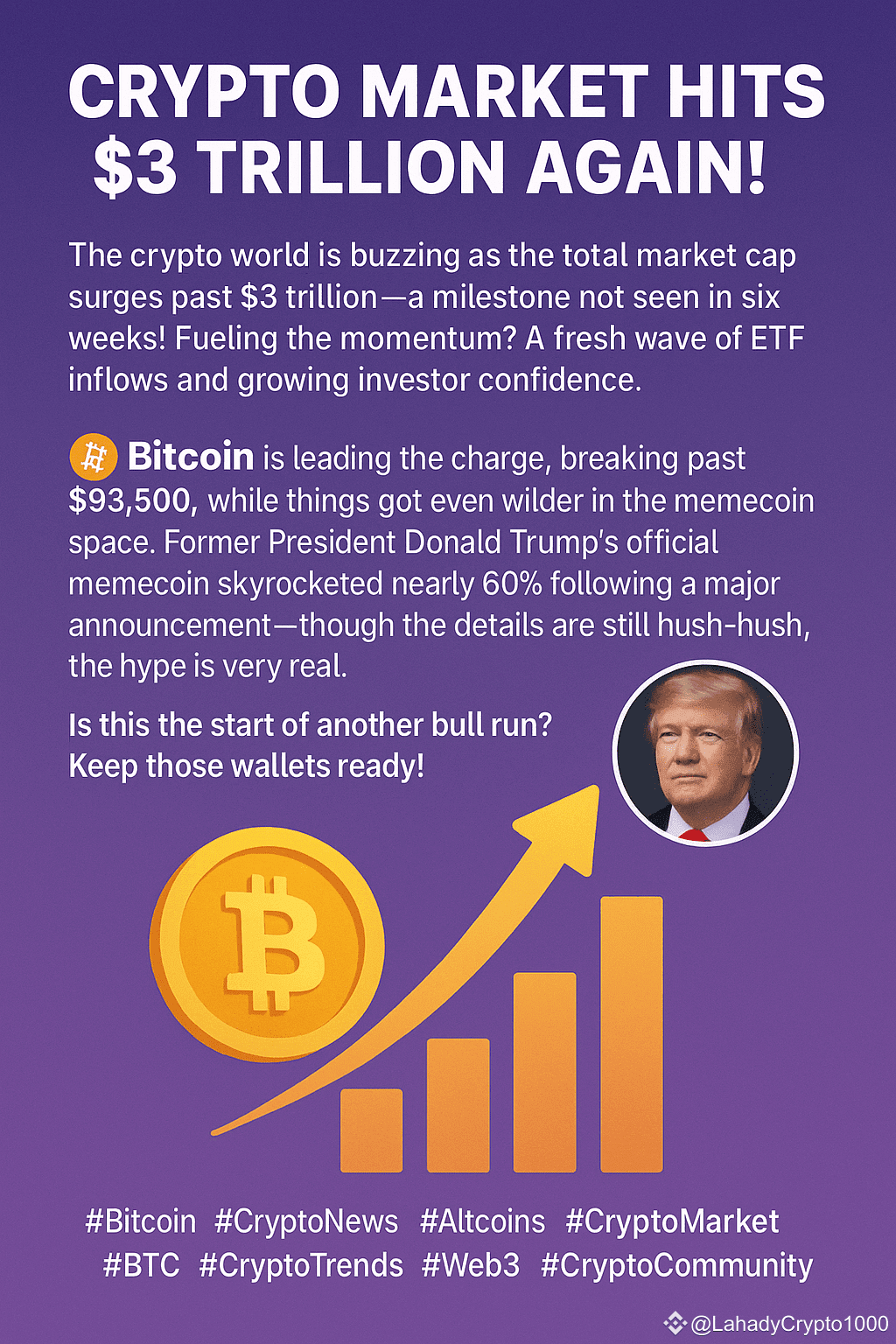 The crypto world is buzzing as the total market cap surges past $3 trillion—a milestone not seen in six weeks! Fueling the momentum? A fresh wave of ETF inflows and growing investor confidence.