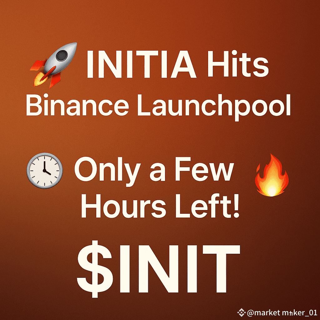 ⏳ The countdown is on! With only a few hours left, $INIT is about to officially land on Binance Launchpool, and this one’s not just another listing — it’s a whole new level. I’ve already staked my $BNB and FDUSD, and I’m earning $INIT rewards in real-time. It’s that simple, and yes — it feels good.
