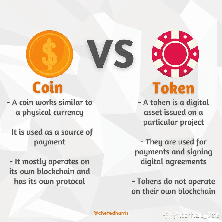Tokens are built on top of blockchains like Ethereum or BNB Chain and are used within specific projects.